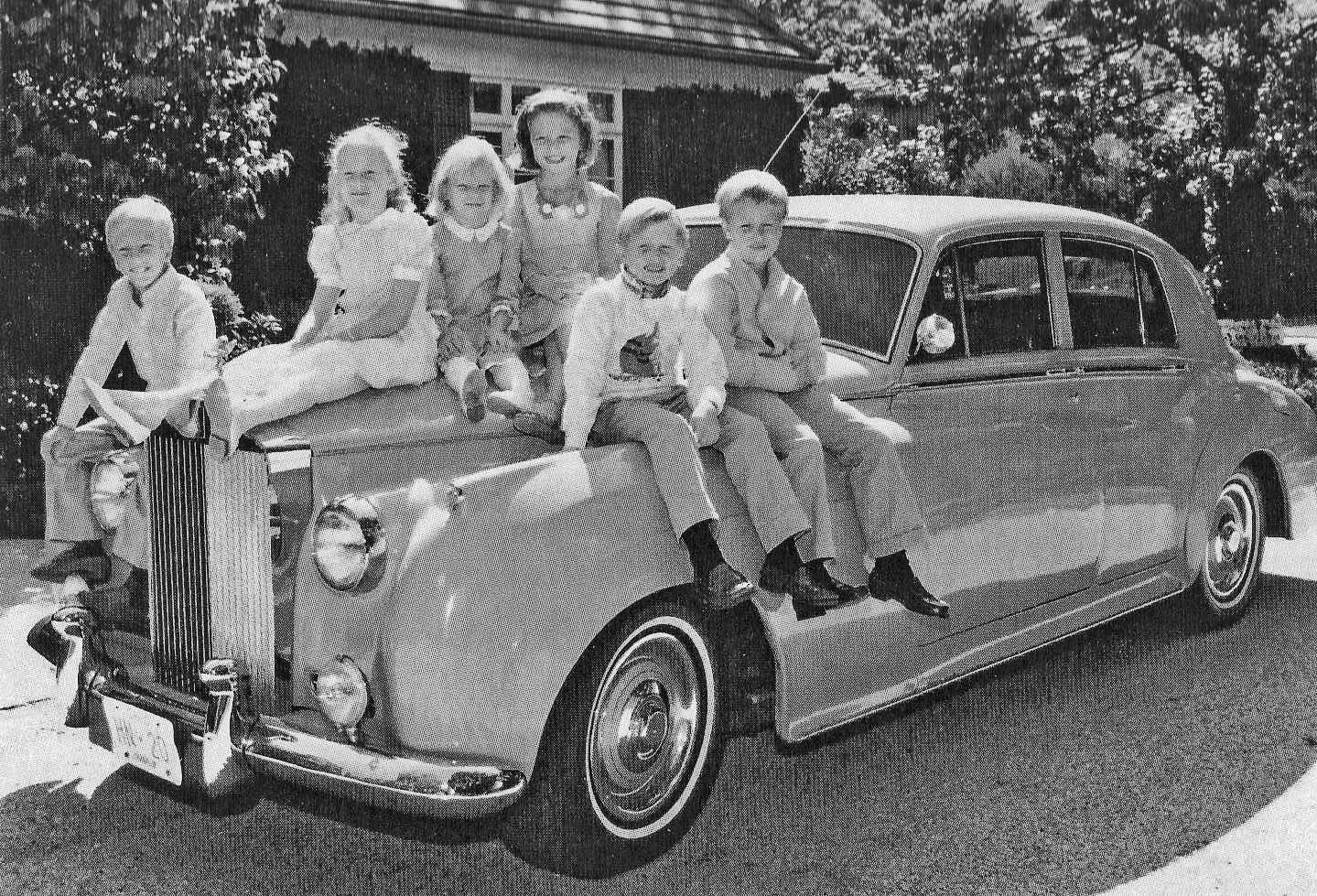 Westwater family 1988 6 of grandchildren on Hazel Nesbitt's Rolls Royce 037 enh b&w - Copy (2).jpg